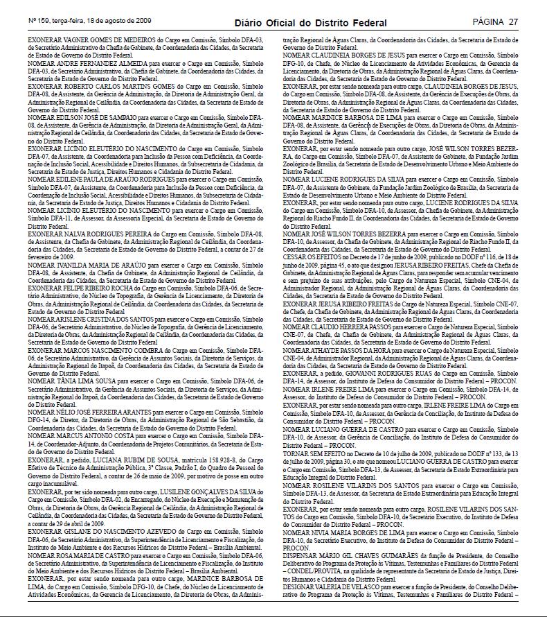 Vejam o ato de sua nomeação, no Diário Oficial do DF: